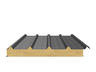 Толщина кровельных сэндвич-панелей варьируется от 50 до 300 мм, что позволяет выбрать оптимальное решение под регион эксплуатации и особенности объекта. Утеплитель из минеральной ваты обеспечивает надёжную тепло- и звукоизоляцию, а жесткие внешние оцинкованные металлические листы с антикоррозийным полимерным покрытием устойчивы к влаге, ультрафиолету и механическим повреждениям. Специальный профиль верхнего листа формирует дополнительное ребро жёсткости и улучшает водоотвод, препятствуя застою осадков на крыше.