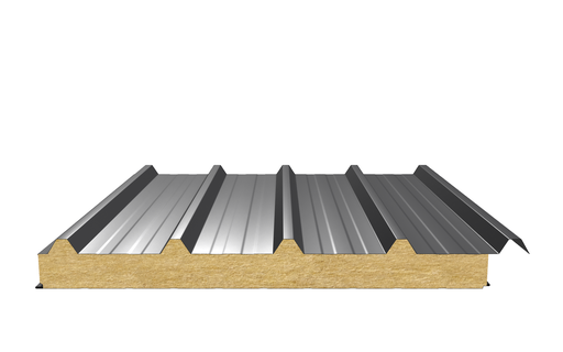 Толщина кровельных сэндвич-панелей варьируется от 50 до 300 мм, что позволяет выбрать оптимальное решение под регион эксплуатации и особенности объекта. Утеплитель из минеральной ваты обеспечивает надёжную тепло- и звукоизоляцию, а жесткие внешние оцинкованные металлические листы с антикоррозийным полимерным покрытием устойчивы к влаге, ультрафиолету и механическим повреждениям. Специальный профиль верхнего листа формирует дополнительное ребро жёсткости и улучшает водоотвод, препятствуя застою осадков на крыше.