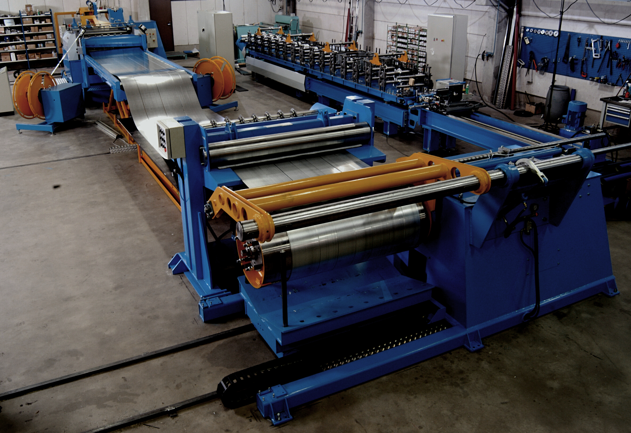 Поперечная резка металла: Производственная линия для поперечной резки металла может включать в себя компоненты, такие как подача металла, устройство поперечной резки (например, механические ножи, лазер или плазменная дуга), систему охлаждения, устройство сбора отходов и управления размером и формой вырезаемых частей.